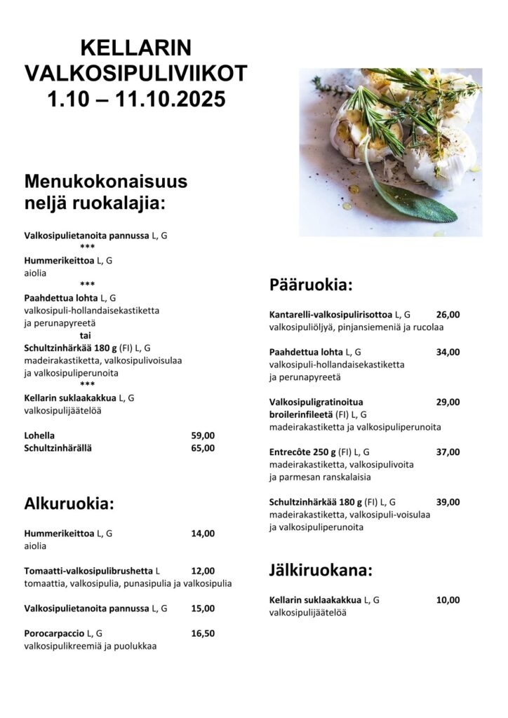 Varaukset: info@kellariravintola.fi tai 02 4690360